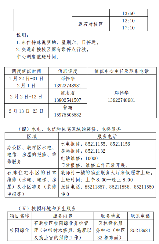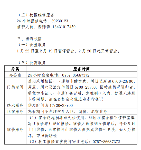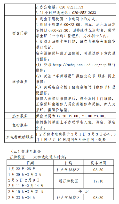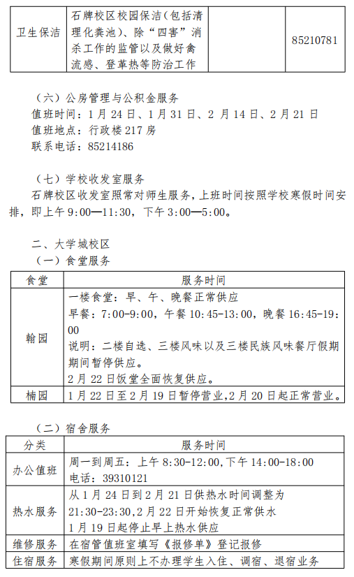 2019年寒假后勤服务指南