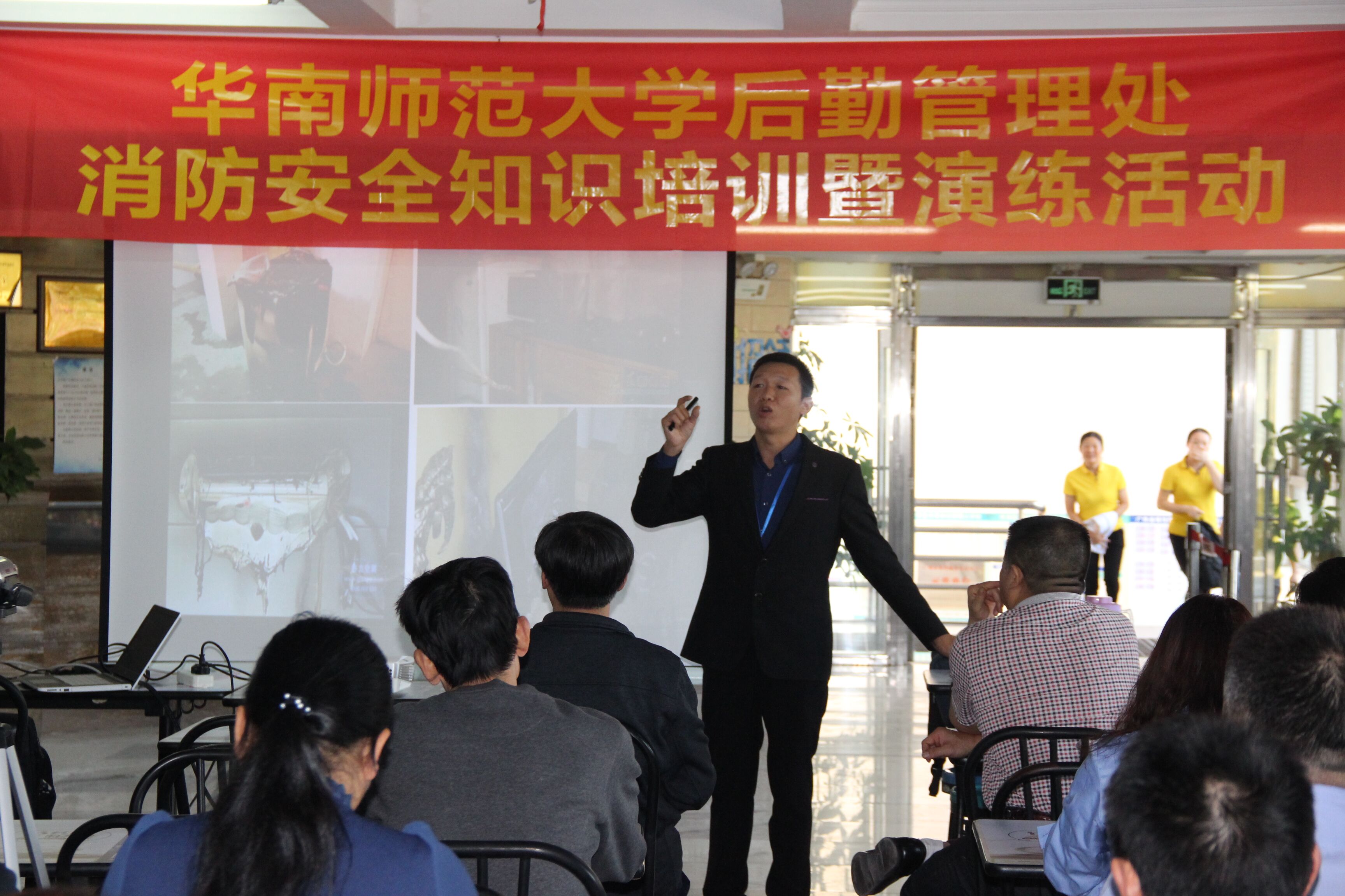 为进一步落实后勤党委安全生产有关精神,增强后勤职工消防安全知识和逃生自救技能,做好消防安全防范工作,11月19日和21日,后勤处饮食服务中心、学生宿舍管理服务中心、大学城后勤办等多单位分别在大学城校区和石牌校区开展了一年一度的消防安全知识培训暨演练活动,各单位消防安全责任人、相关管理人员和新入职员工参加了此次培训。