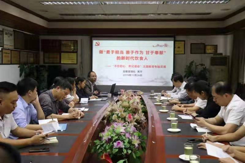 11月26日下午3:00,后勤处黄平副处长到饮服中心开展“不忘初心、牢记使命”主题教育专题党课活动,给饮服中心全体党员、入党积极分子和管理人员上了一堂生动丰富的党课。
