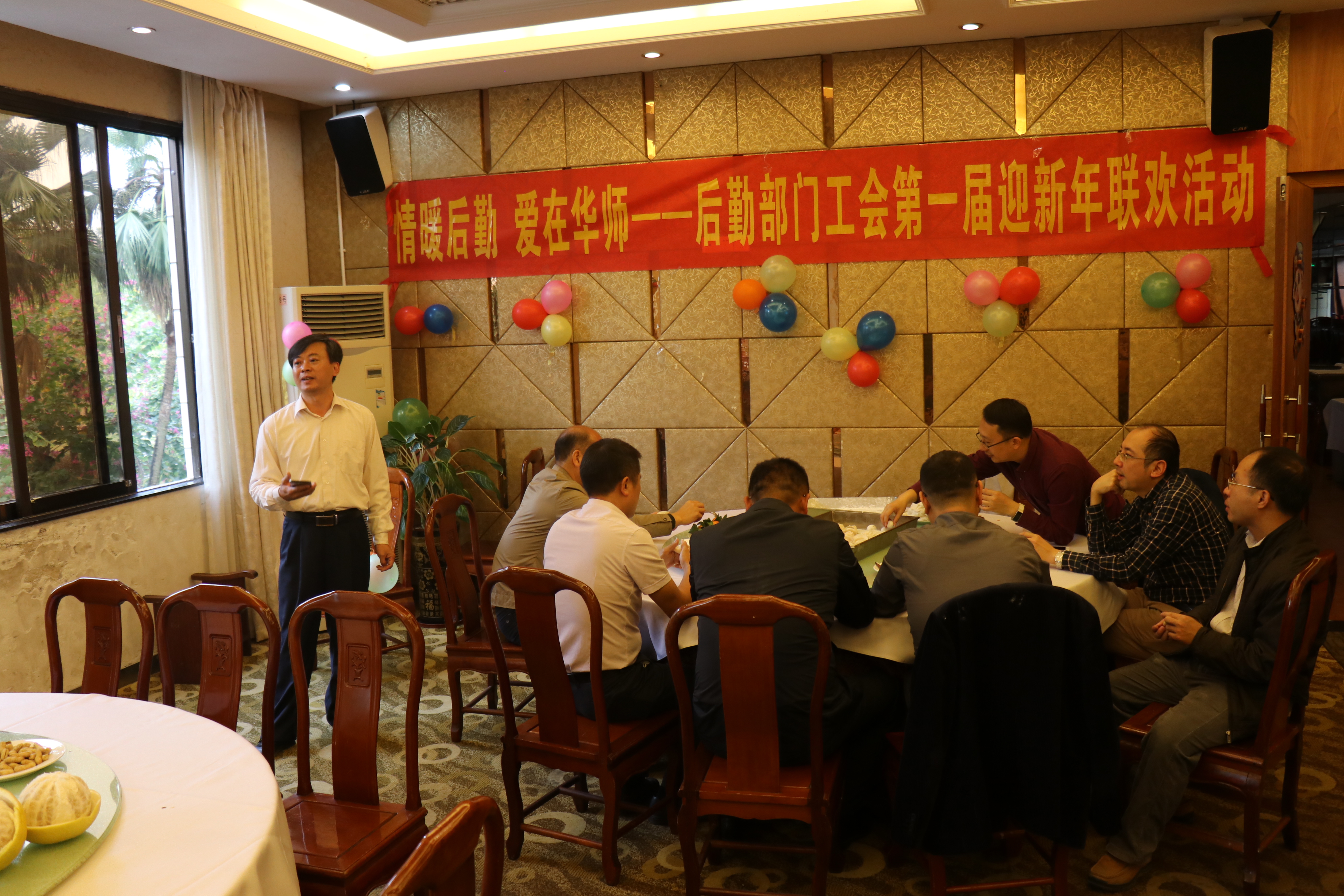 辞旧迎新情暖后勤,接福纳喜爱在华师。12月25日,后勤部门工会干部职工欢聚一堂,回顾2019、展望2020,其乐融融。后勤党委副书记丁纯,副处长李伟聪、黄平以及处中层干部,党支部书记、委员,小机关全部人员参加了活动。
