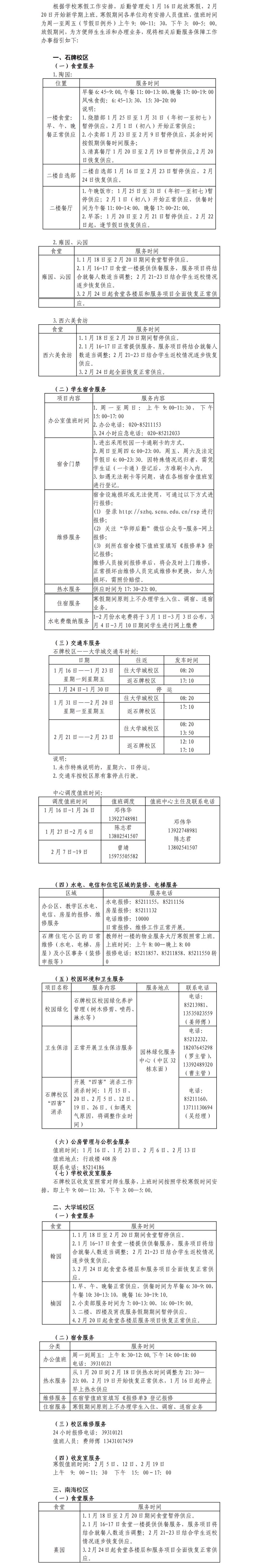2020年寒假后勤服务保障工作办事指南