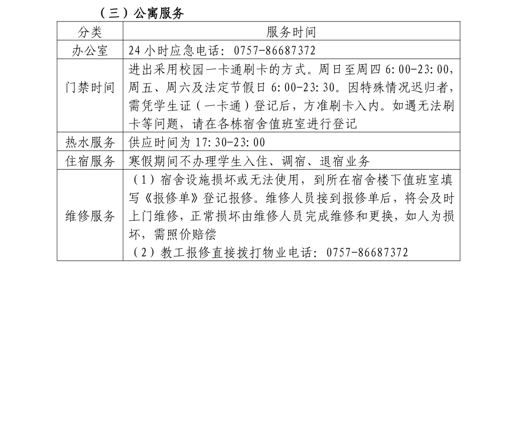 学生住宿服务