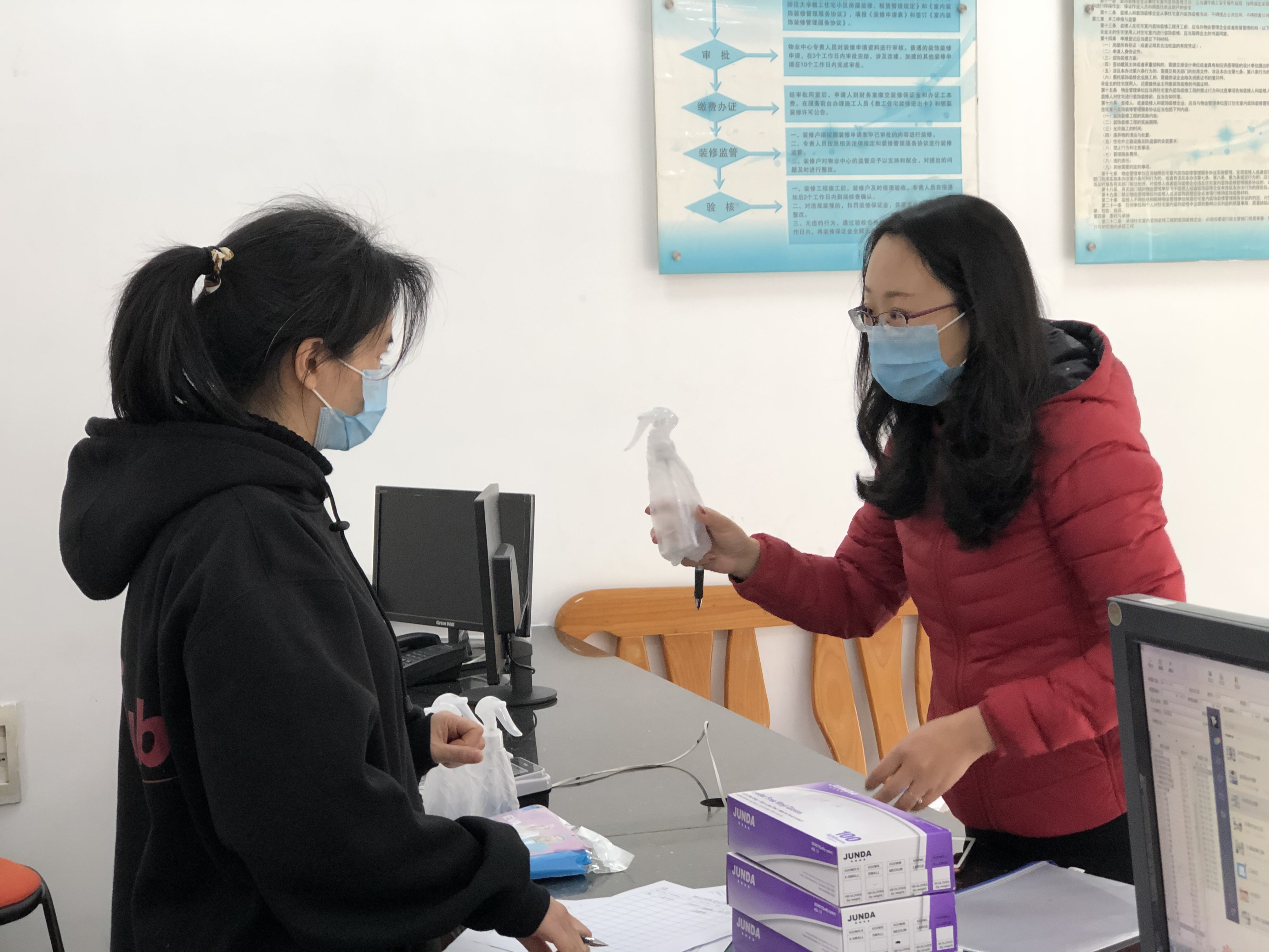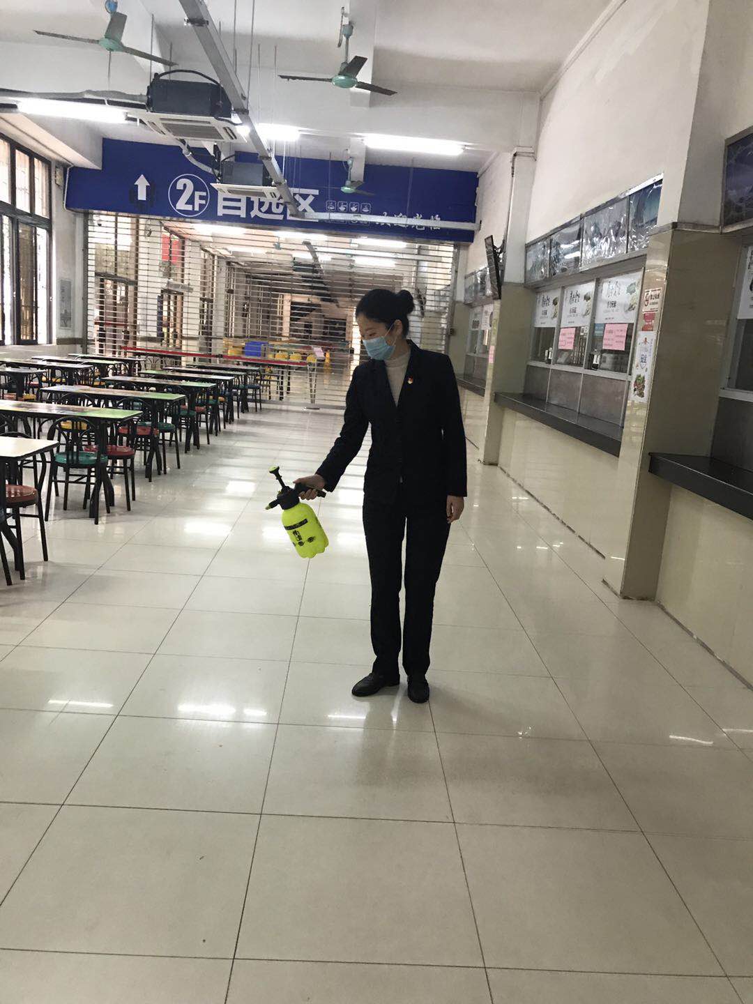 自1月20日起,后勤各单位及外包服务企业在爱卫办的指导下对学生宿舍、家属区、校园公共区域等进行日常防疫卫生清洁和重点消毒工作,并落实食堂、学生宿舍及教工楼楼道、大堂、电梯等人员密集公共场所的每日消毒等工作。