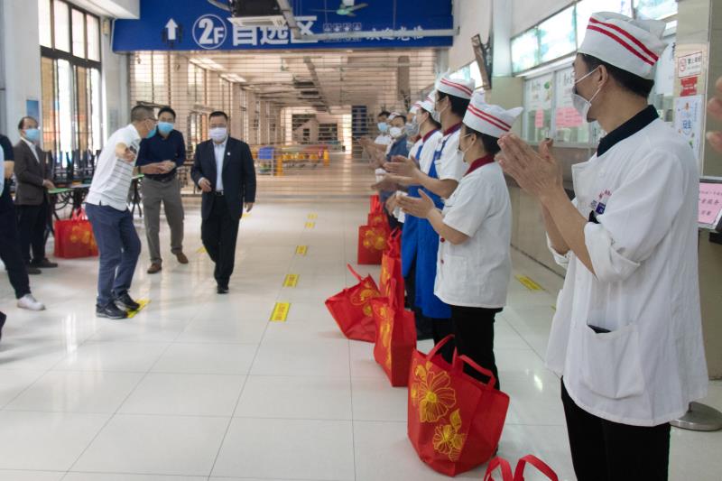 食堂一线工作人员备受鼓舞,纷纷感谢朱书记及学校各级领导的关怀,表示会认真落实疫情防控的各项工作,努力做好在校师生员工的饮食服务工作,向学校交出满意的答卷。