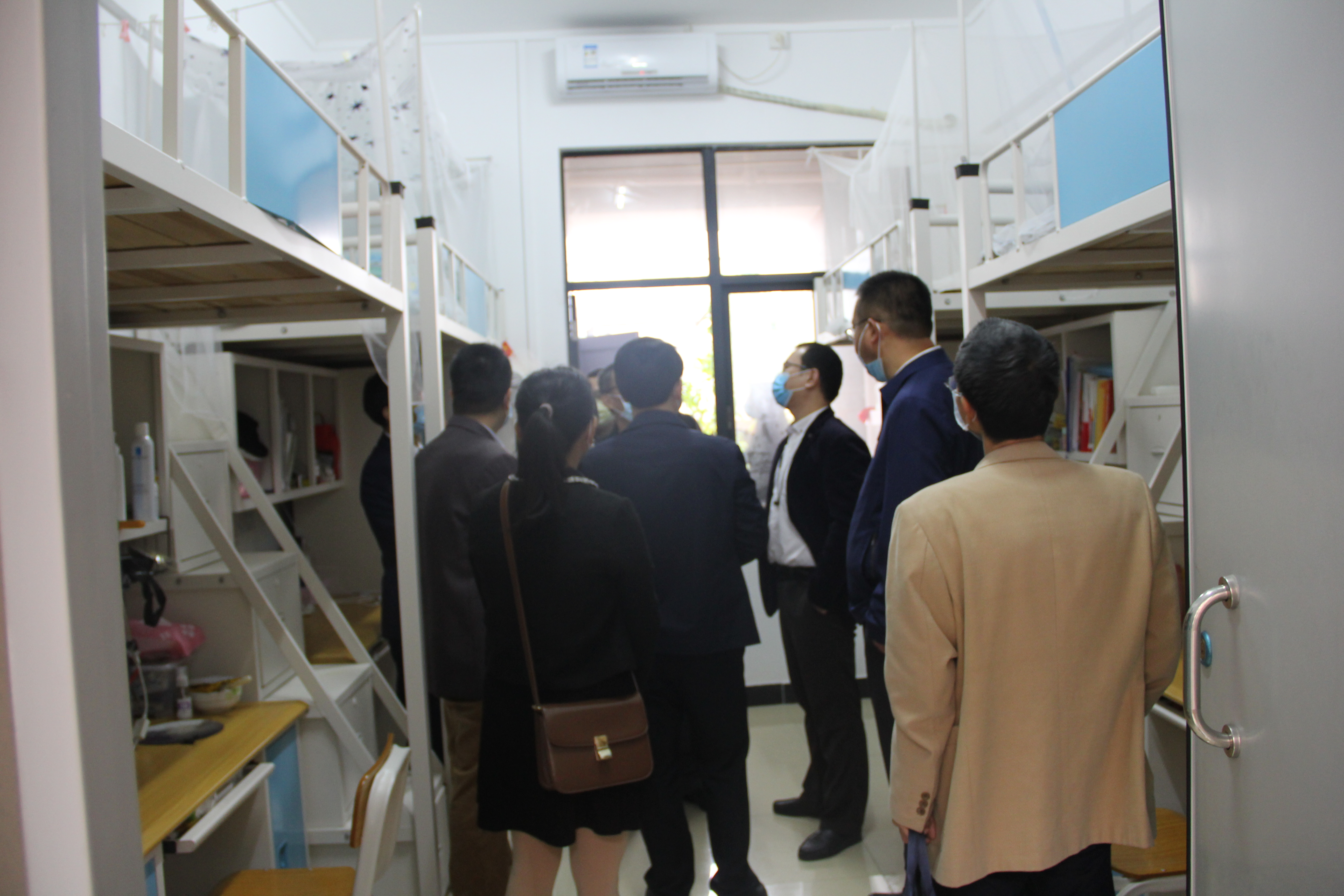 4月3日上午,仲恺农业工程学院党委常委、副校长张文峰,学生工作处处长李伟东,审计处处长李永华,发展规划处副处长熊明,后勤与资产管理处副处长何文峰等一行来我校开展学生宿管理工作及家具配置情况调研。
