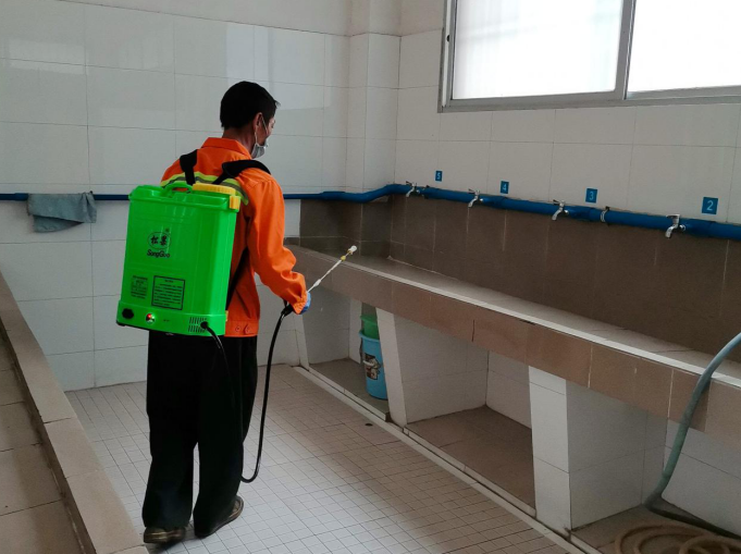 广东省教育厅和中国教育后勤协会等政府部门、行业协会及时出台了疫情防控期间的一系列不同场所消毒指引,我校宿管中心严格按消毒指引,立即开展了全校学生宿舍的预防性消毒,与爱卫办一起,安排使用过氧乙酸溶液对全校所有的学生宿舍(包括每一间房间内部)使用喷雾器进行空间喷洒消毒。同时每天定时多次严格规范地对门岗、闸机、电梯、走廊等公共区域进行消毒;同时于3月下旬组织专业的消毒企业,对全校学生宿舍的空调滤网进行了清洗和消毒。