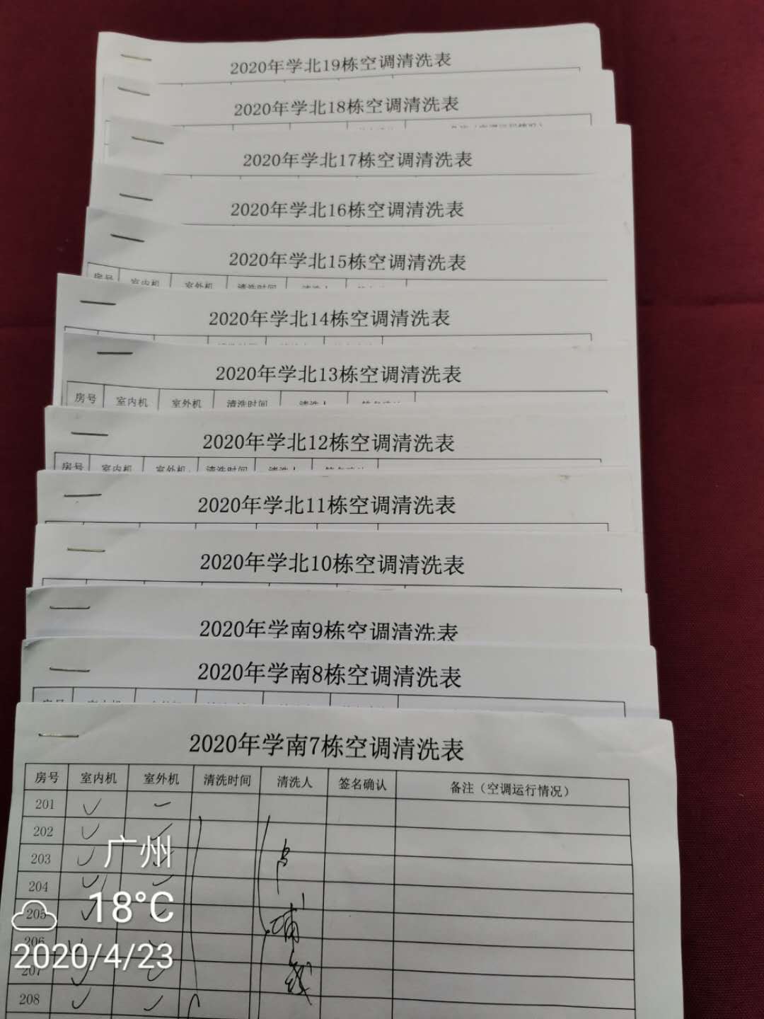 刘伟老师听取了物业公司的工作汇报,抽查了工作台账、空调清洗记录表、用电设备巡查记录表、学生日常出入登记表等相关资料,并查看了学生宿舍现场保障状况。