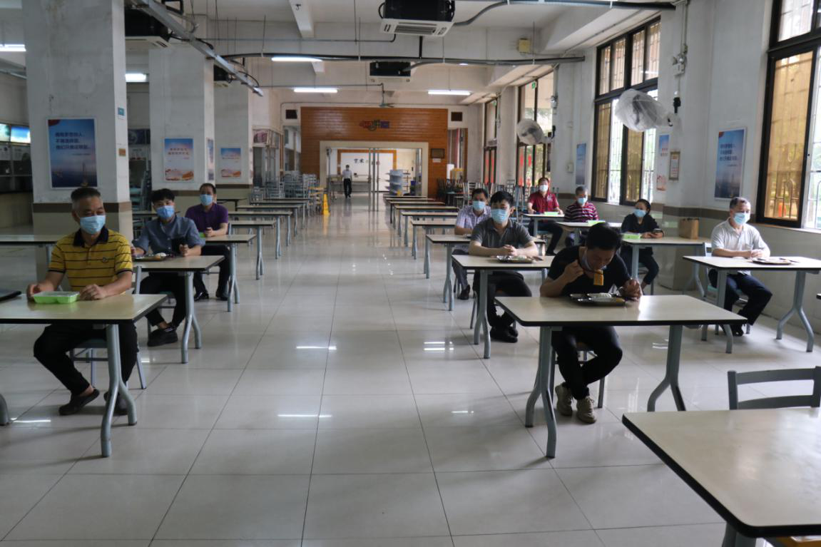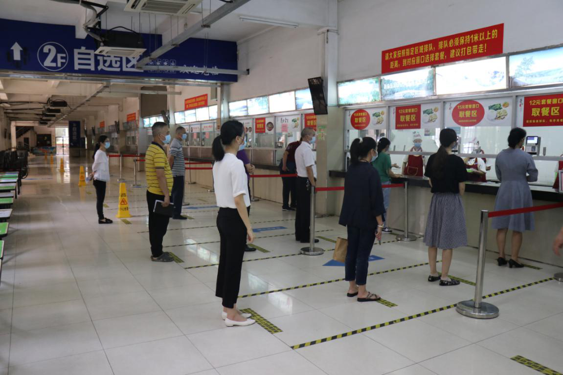食堂餐位保持1米以上间距,单向就座