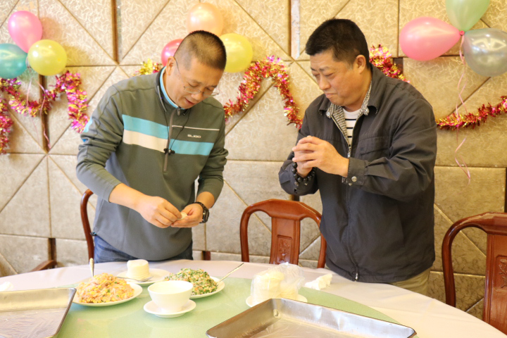 活动开始,大家围坐在桌前互相学习、共同交流家乡饺子的包法以及各地吃饺子的特色风俗,一双双灵巧的手把馅儿放在饺子皮上,沾点清水轻轻涂抹在四周,再将饺子皮一翻,反复地一挤、一捏折出许多褶子。谈笑间,饱满的玉米肉馅和韭菜肉馅饺子在大家灵巧的手中一一成型。大家用浓浓的心意包起小小的饺子,祈愿平安幸福。餐桌上,刚出锅的饺子正冒着热气,搭配汤圆和陶园刚推出的新菜,餐厅饭香四溢,令人食欲大开。个个脸上带着温馨的笑容,吃着自己亲手做的饺子,香在嘴里、甜在心头。