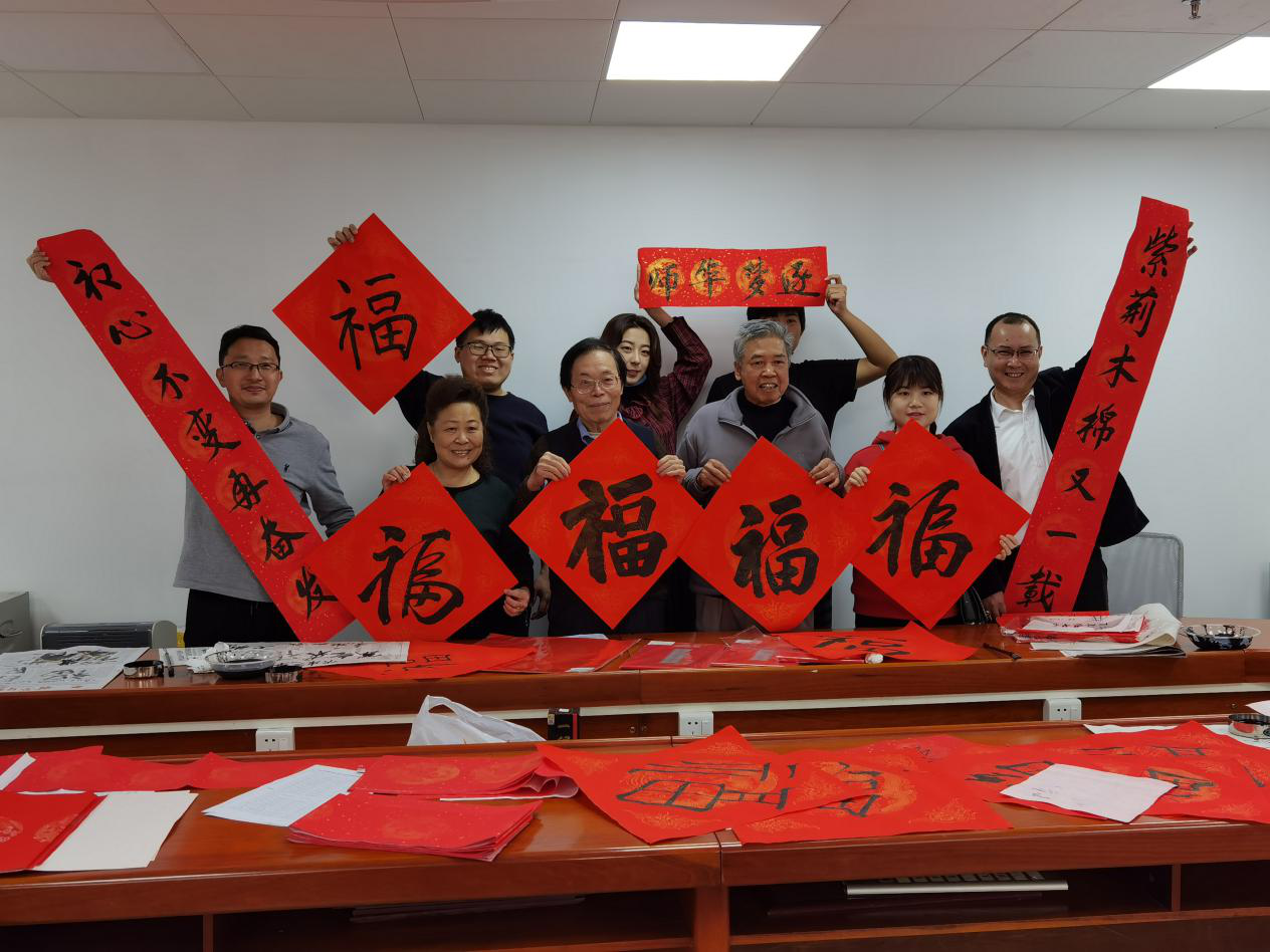 根据前期开展的“宿舍春联征集大赛”,1月29日上午,邀请师生共同挥毫泼墨,书写春联,向留校学生派发春联、福字斗方,弘扬传统文化,三校区学生宿舍张贴春联,营造新春氛围。