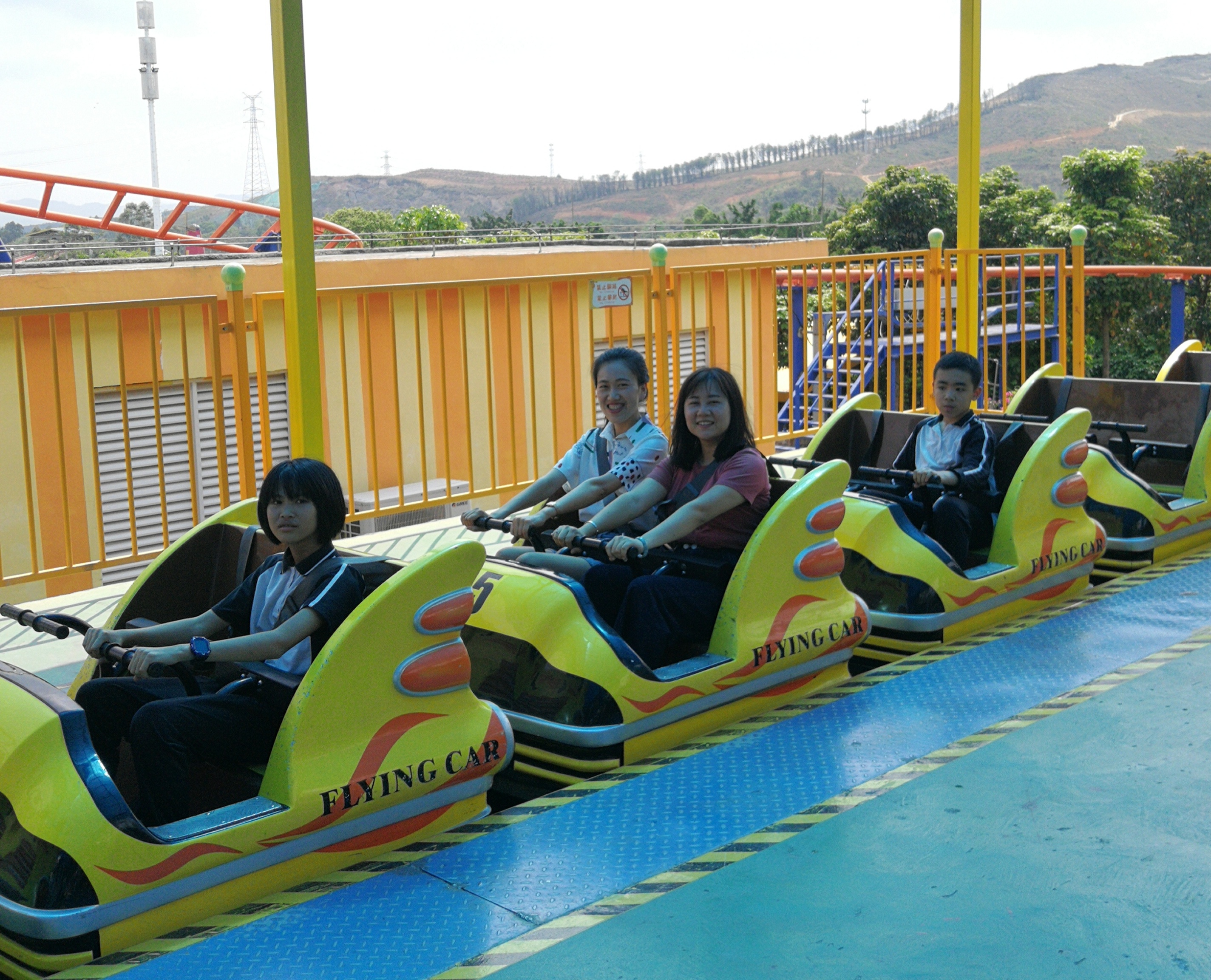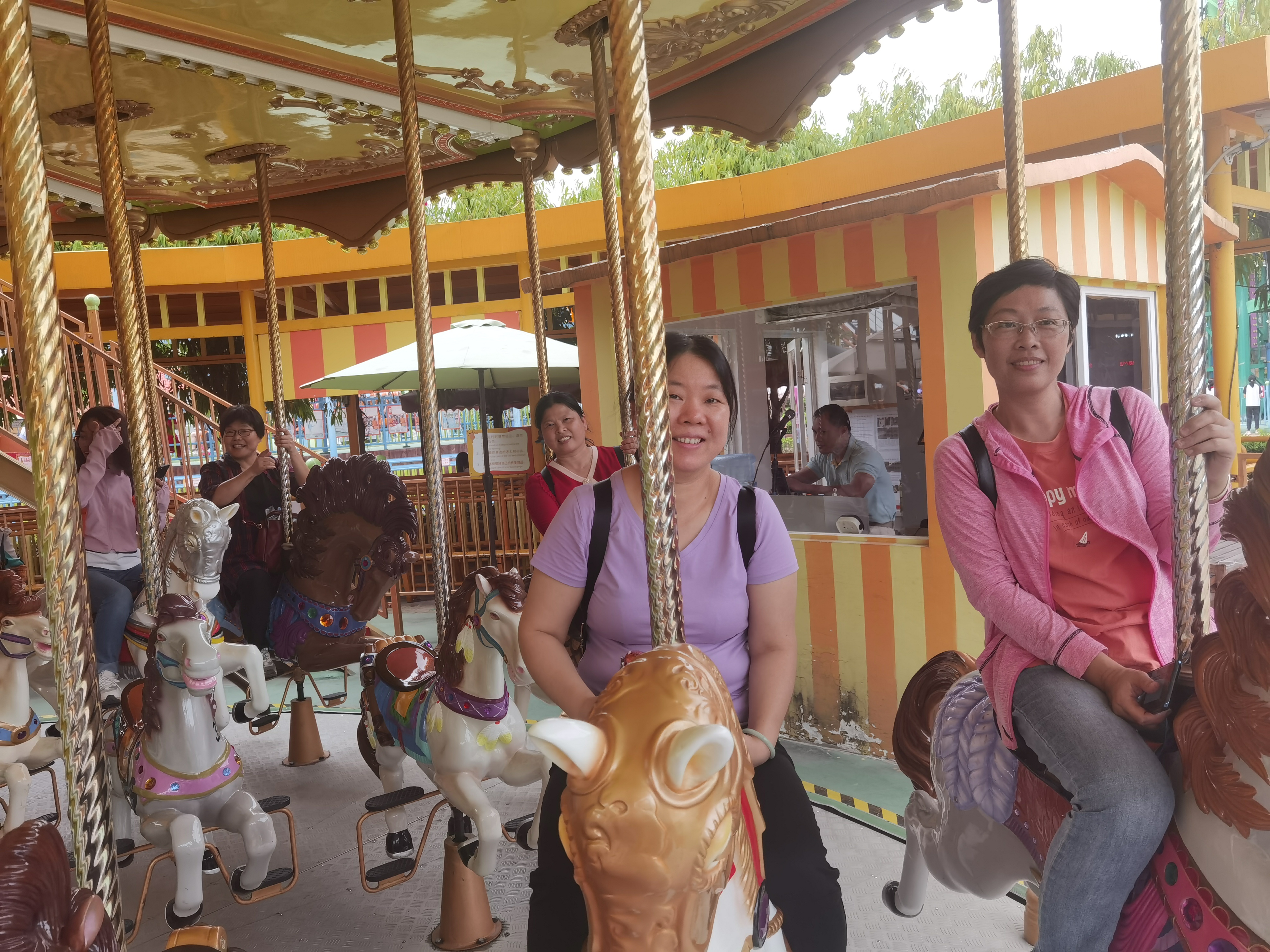 大家在“尖叫岛”排队玩起了机动游戏,时而爽朗大笑,时而放声尖叫,仿佛一群还未长大的小朋友。