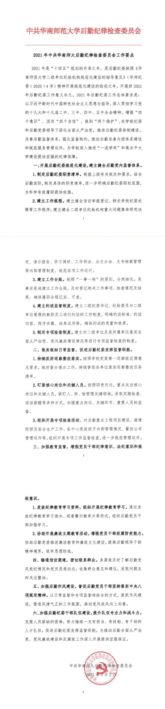 2021年中共华南师大后勤纪律检查委员会工作要点