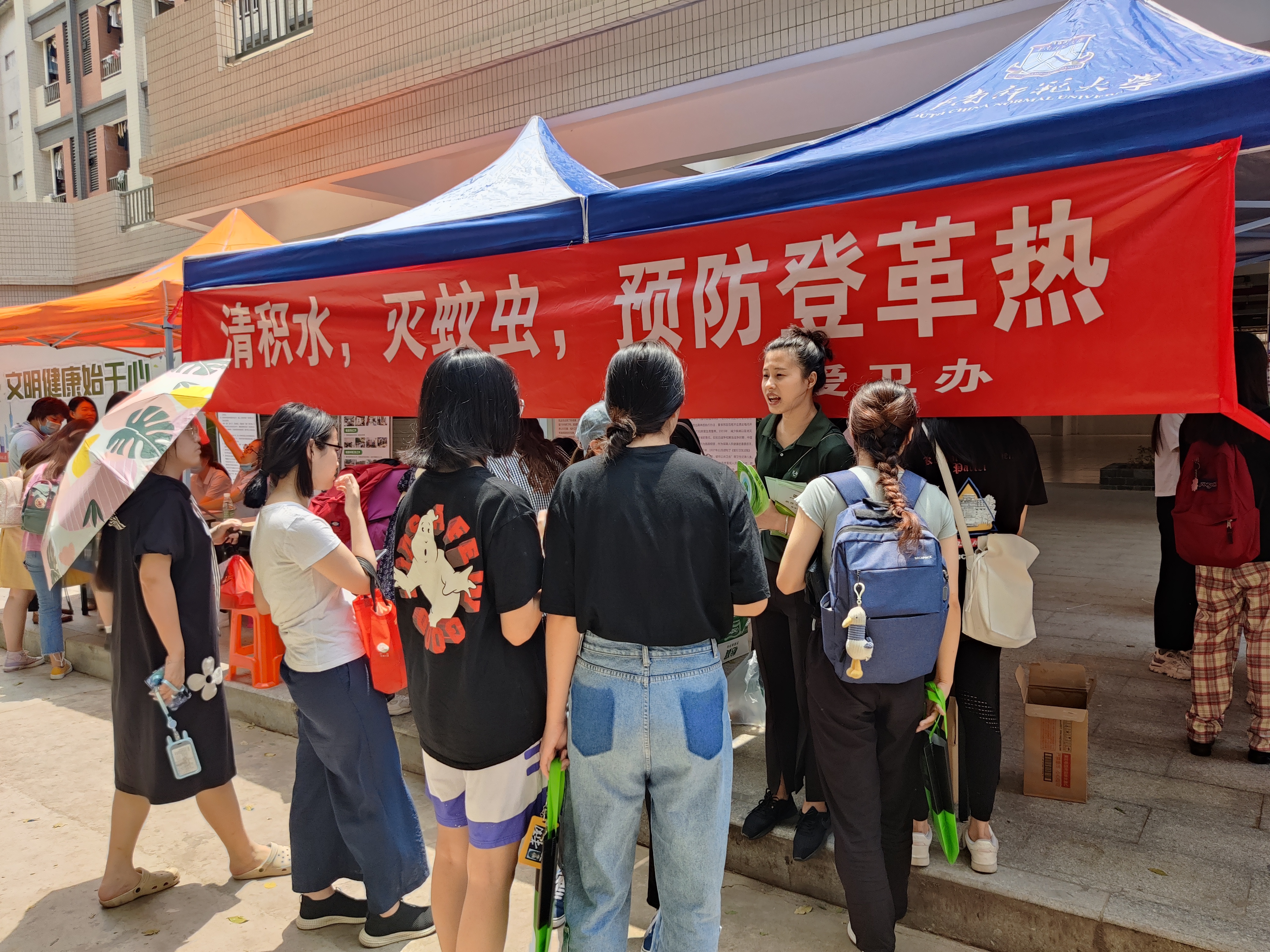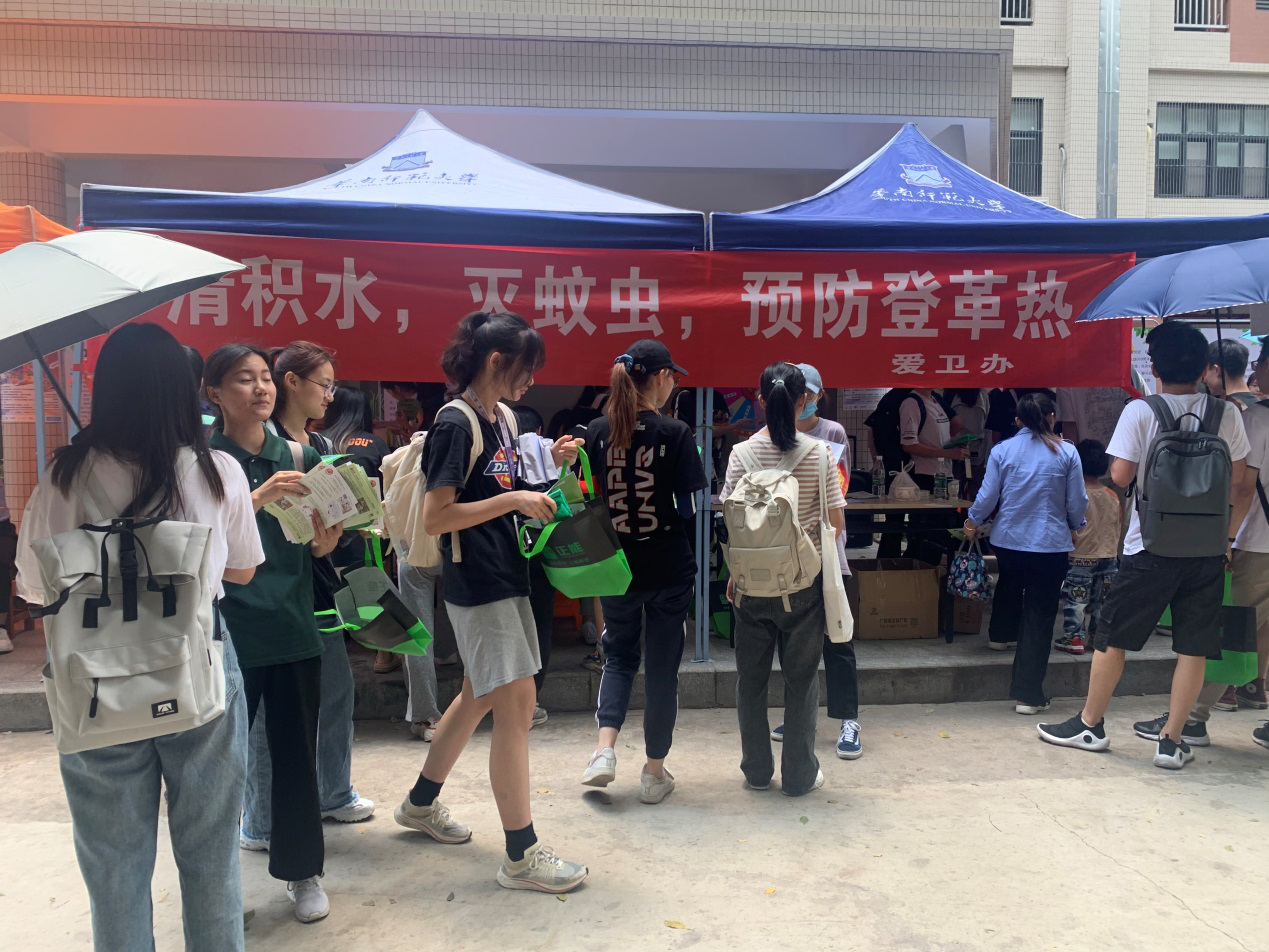活动当天,现场还设置了面向师生们普及爱卫知识的纸质版问卷、套圈游戏、幸运大转盘、抓娃娃等摊位,亦有工作人员及志愿者向师生派发宣传单、灭蚊片等物品进行知识宣传,并提供了爱卫内容的咨询和科普服务,吸引了不少人参与进来。