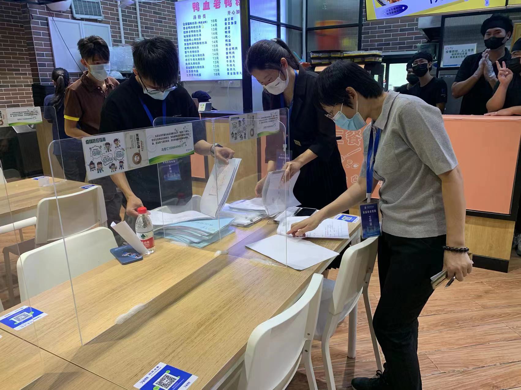 检查组重点检查了学校食堂(含幼儿园)、酒店、超市、商铺(档口)、桶装水供应点、自动售卖机等场所的食品安全管理制度、食品经营许可证、原材料采购工作台账、环境卫生、疫情防控等情况。经检查,各食堂,大部分商铺(档口)、超市、酒店等场所环境卫生状况总体良好,食品安全管理规范到位,采购生产流程台账明确清晰,但也存在个别商铺(档口)食品留样不规范、从业人员食品安全意识淡薄等问题,检查组发放通知单要求立即整改。