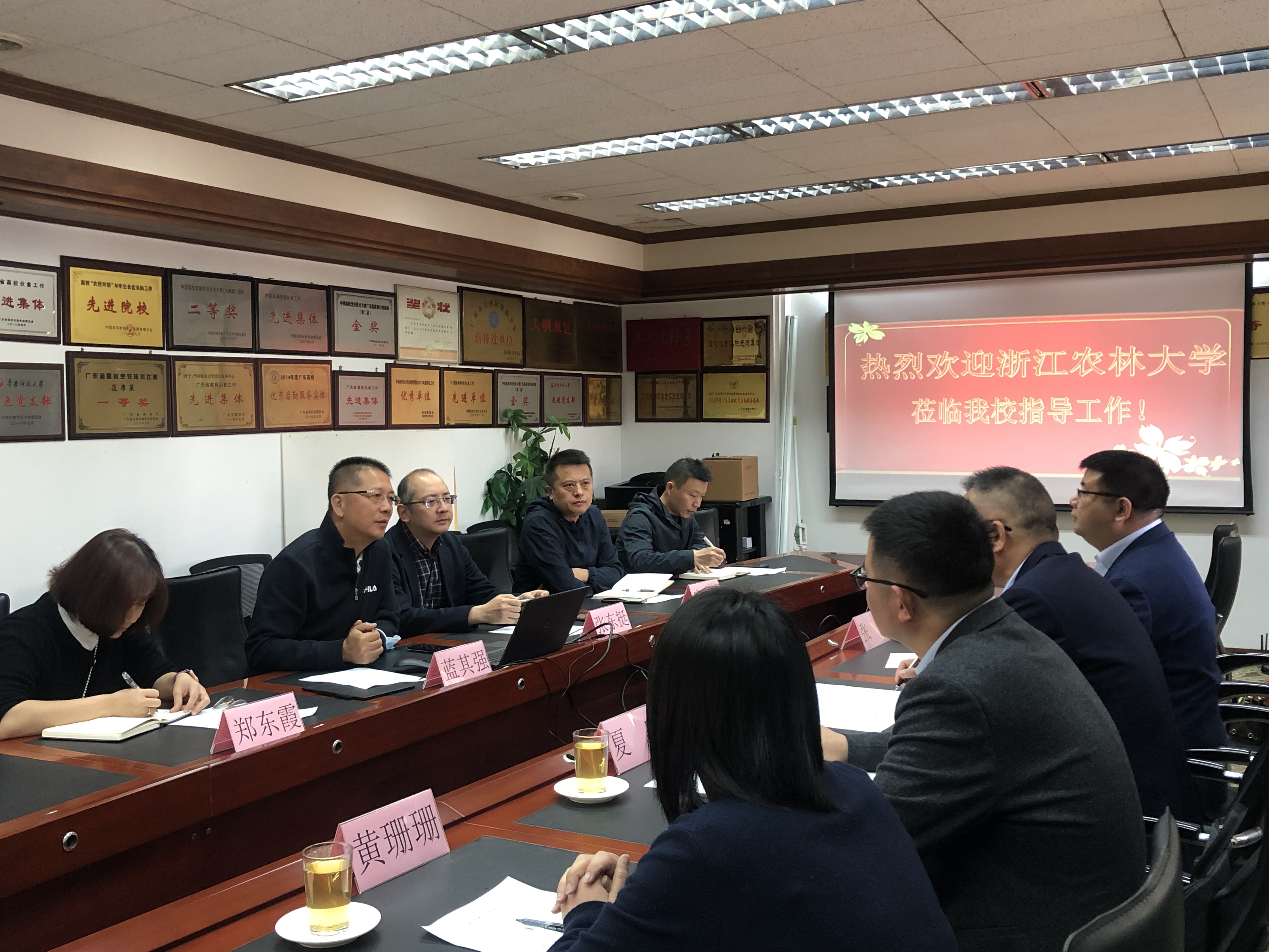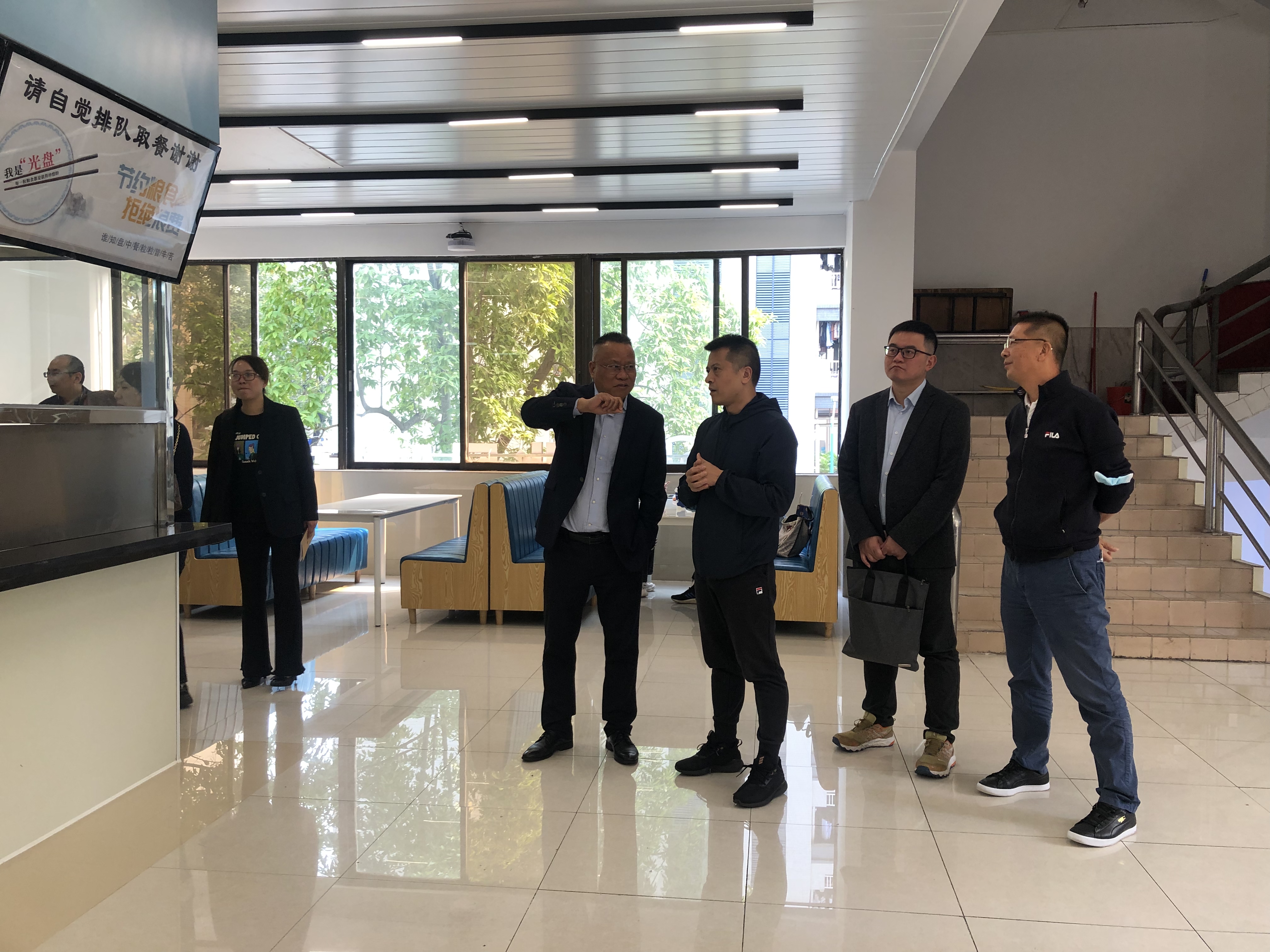 2023年2月23日上午,浙江农林大学后勤服务中心党委书记、主任吴通苗一行5人到我校石牌校园调研交流后勤管理服务工作,双方进行了座谈交流,并实地走访了饭堂和学生宿舍。