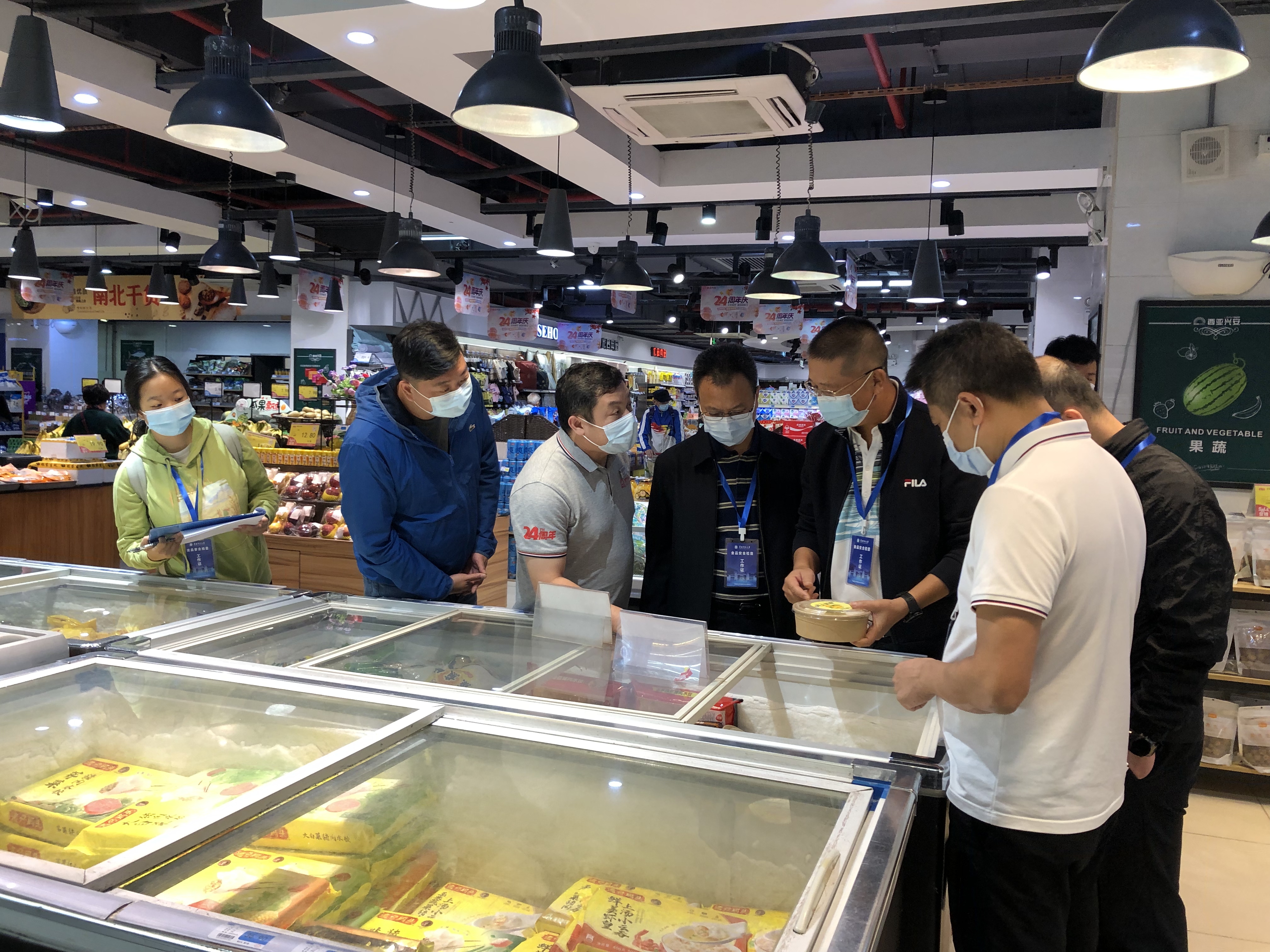 检查组对各单位的营业执照、食品经营许可证、从业人员健康证、加工制作、清洗消毒、食物储存、进货查验、购销台账登记、索证索票、留样、餐厨废弃物管理和食品安全承诺等制度落实情况、互联网+明厨亮灶设备正常运转情况、基础设施和卫生环境、有无销售与使用“三无”食品和假冒伪劣、有毒有害、过期变质及其它不合格食品等进行了全面检查。