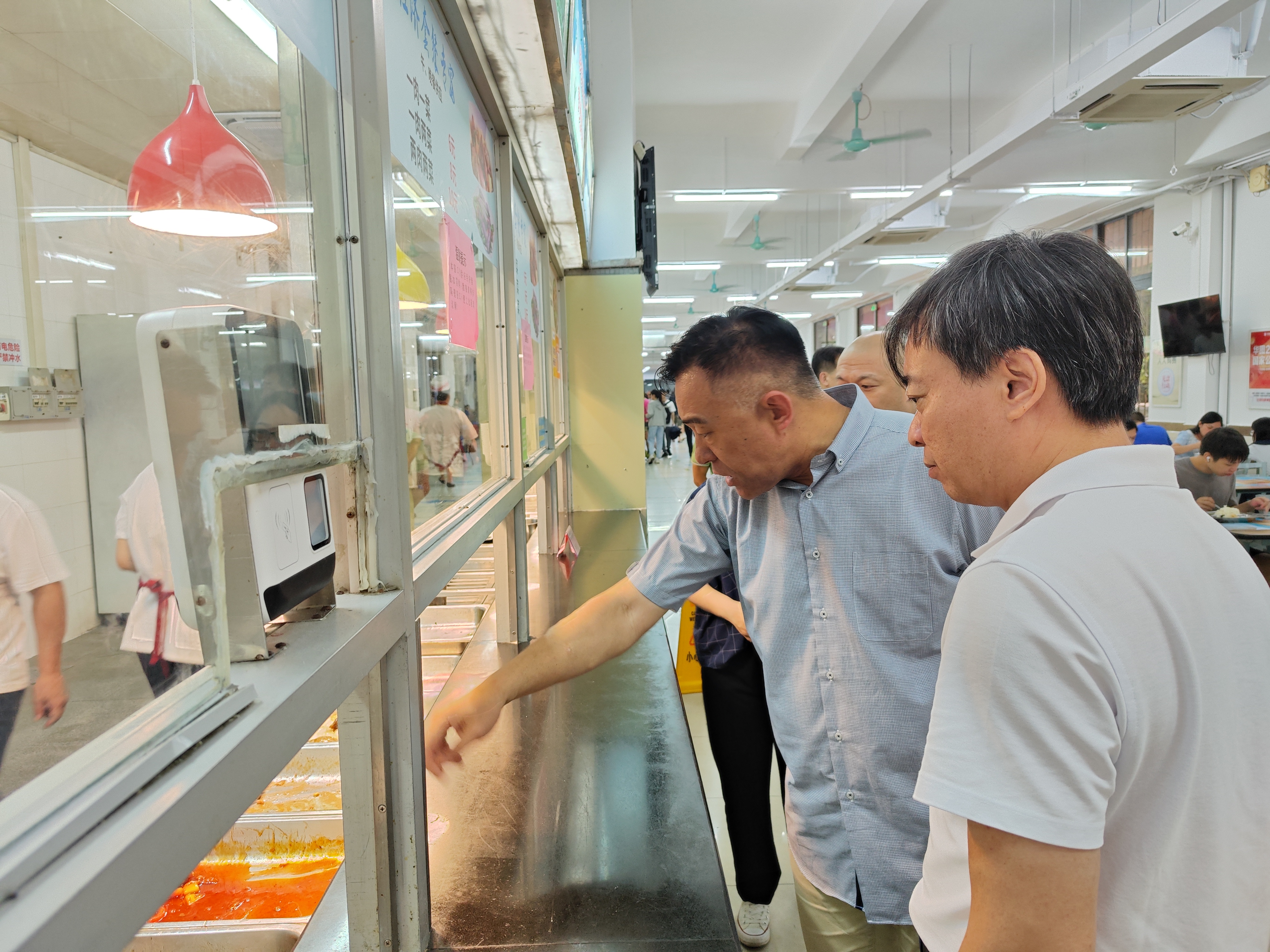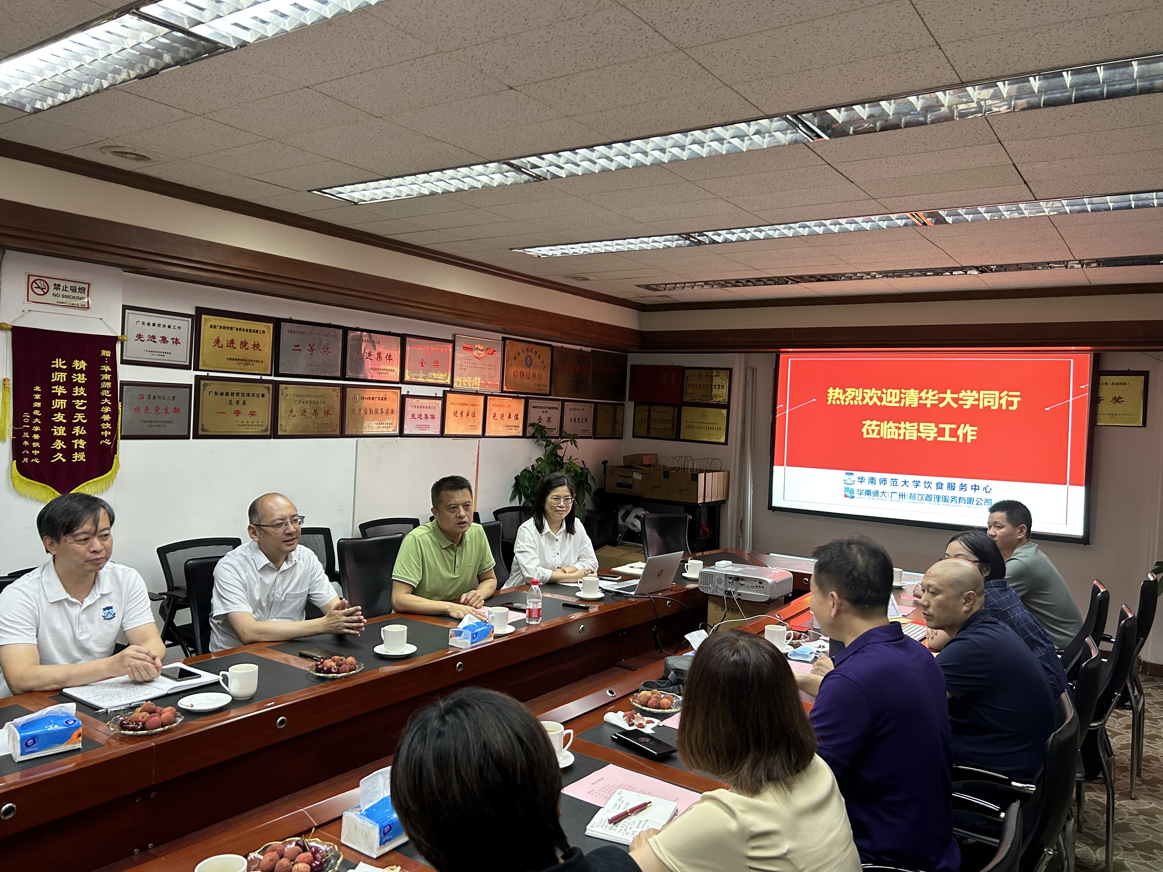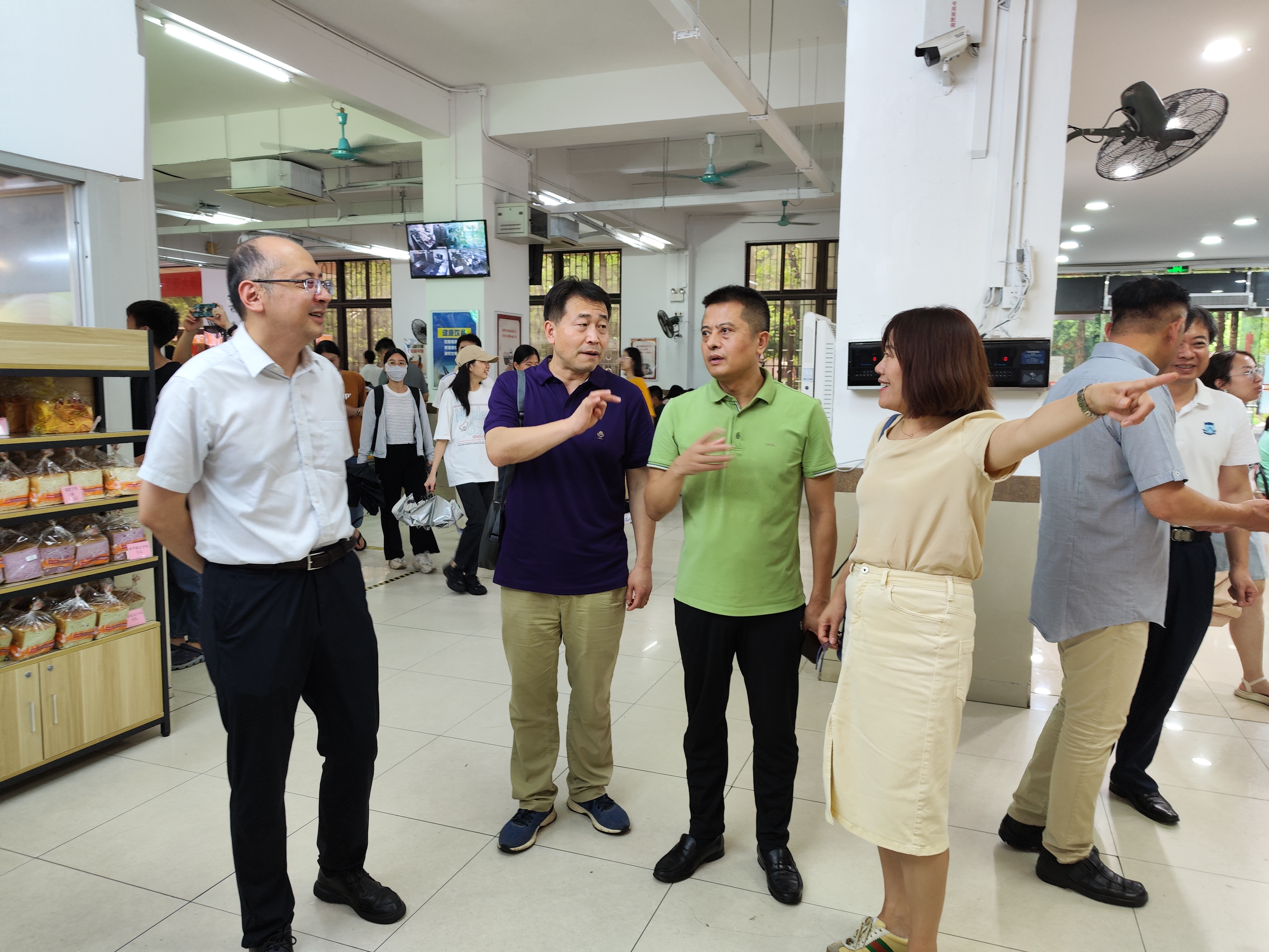 2023年6月7日下午,清华大学饮食服务中心主任魏强一行10人莅临我校石牌校园饮食服务中心调研交流伙食管理工作,双方进行了座谈交流并参观陶园食堂,我校后勤管理处副处长张东挺以及饮食服务中心负责人廖海雄、党支部书记叶育贤等陪同交流。