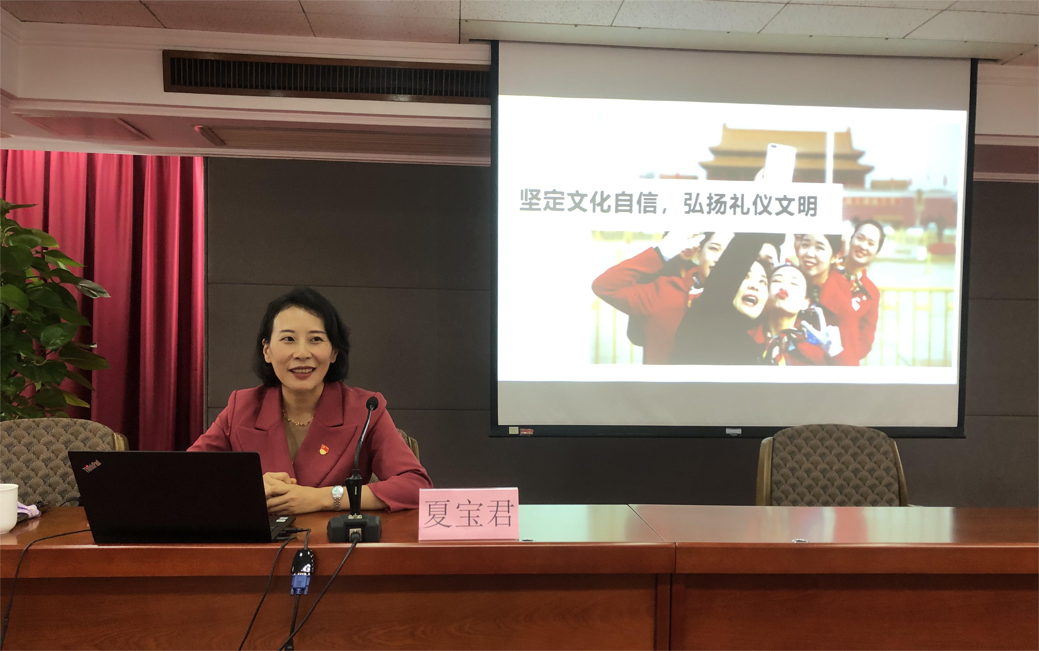 2023年10月26日,后勤党委邀请教育信息技术学院副教授夏宝君作专题讲座,主讲《高校行政礼仪与服务意识》。讲座由后勤党委副书记、纪委书记丁纯主持。近80名后勤干部聆听了讲座。