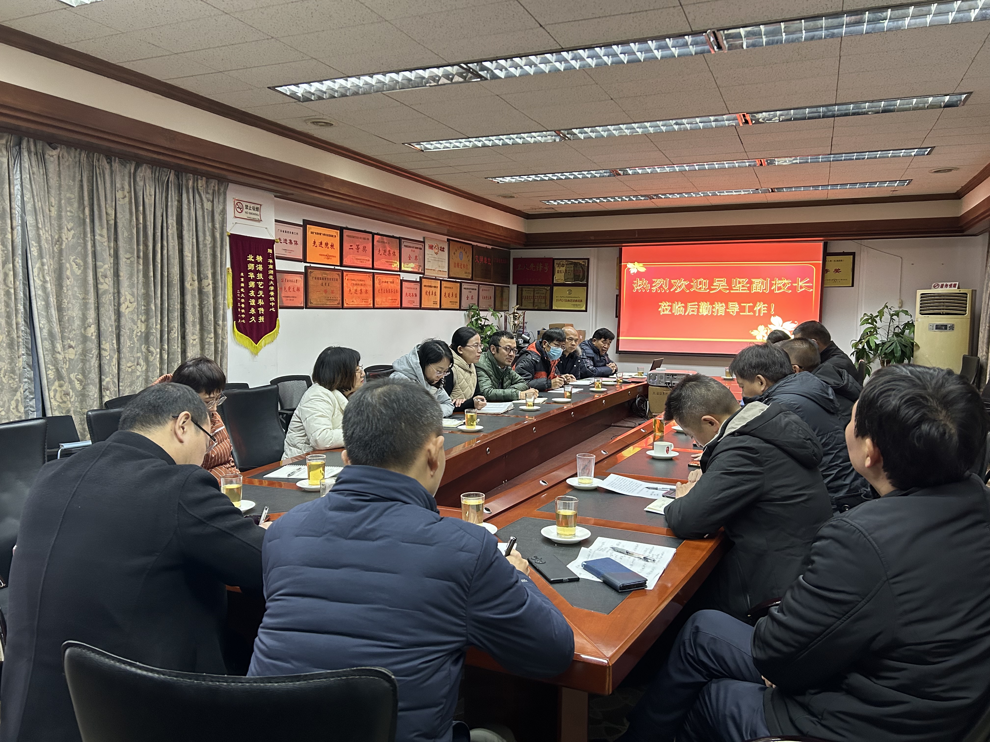 2023年12月21日上午,我校党委常委、副校长吴坚到后勤管理处指导工作,并在饮食服务中心会议室召开了调研座谈会。后勤管理处领导班子成员、党委委员、中心及科室负责人参加了座谈会。座谈会由后勤党委书记、后勤管理处处长蓝其强主持。