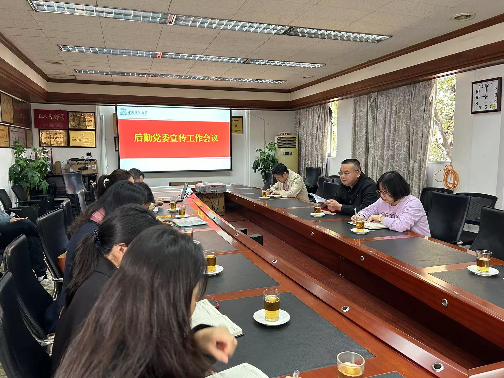 会上,丁纯对后勤宣传工作进行部署。丁纯表示,后勤要高举党的文化旗帜,坚持以习近平文化思想为引领,准确把握新的形势和任务,不断开创宣传思想文化工作新局面。后勤全体党员干部及教职工要持续深入学习宣传贯彻习近平文化思想,巩固扩展主题教育成果,坚持不懈用新时代党的创新理论凝心铸魂,弘扬文明新风,推动思想道德和精神文明建设呈现新气象。丁纯强调,各单位要认真贯彻落实广东省高质量发展大会和学校高质量发展大会精神,紧扣省委“1310”具体部署和学校“1238”发展思路,紧扣开源节流、机构改革、“三全育人”等工作主线,着力推动形成后勤大宣传格局,为构建一流后勤服务保障积极鼓与呼。后勤宣传工作队伍要充分认识宣传工作的重要性,积极主动、创新形式、整合力量、质量数量并举,积极宣传后勤的好人好事,让师生走近后勤、走进后勤,加强信息沟通,提升后勤形象,以高质量宣传工作助推后勤高质量发展。