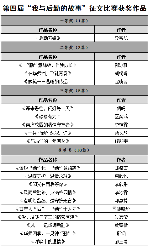 为深入学习贯彻习近平新时代中国特色社会主义思想和党的二十大精神,贯彻落实学校“1238”发展思路,增强师生员工与后勤的沟通交流,共建服务育人文化,构建“三全育人”新格局,推动打造一流后勤服务保障体系,助力学校“双一流”建设和高质量发展,后勤党委、后勤管理处于1月-5月举办了第四届“我与后勤的故事”征文比赛,期间收到师生踊跃投稿。