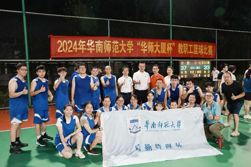 10月18日,后勤部门工会篮球队积极响应健康中国行动号召,参加由校工会主办、校教职工篮球协会承办、体育科学学院协办的2024年华南师范大学“华师大厦杯”教职工篮球比赛,比赛由后勤队对阵化学环境学院队。后勤党委副书记丁纯、后勤管理处副处长王晓荣到现场指导、观赛。
