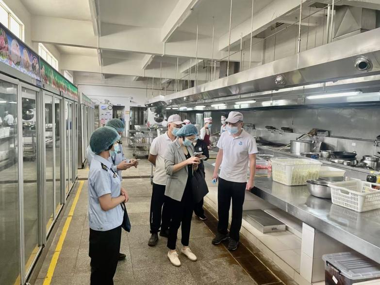调研组一行来到石牌校园雍园食堂,深入食堂厨房加工间、专间、售卖间、库房和膳厅等重点场所,对食堂食品安全信息公示、原料采购、进货查验及索票索证、食品贮存管理、生产加工操作规范、“三防”设施设置、环境卫生、“日管控、周排查、月调度”制度建立与落实、食品安全台账管理等重要内容进行督导检查。