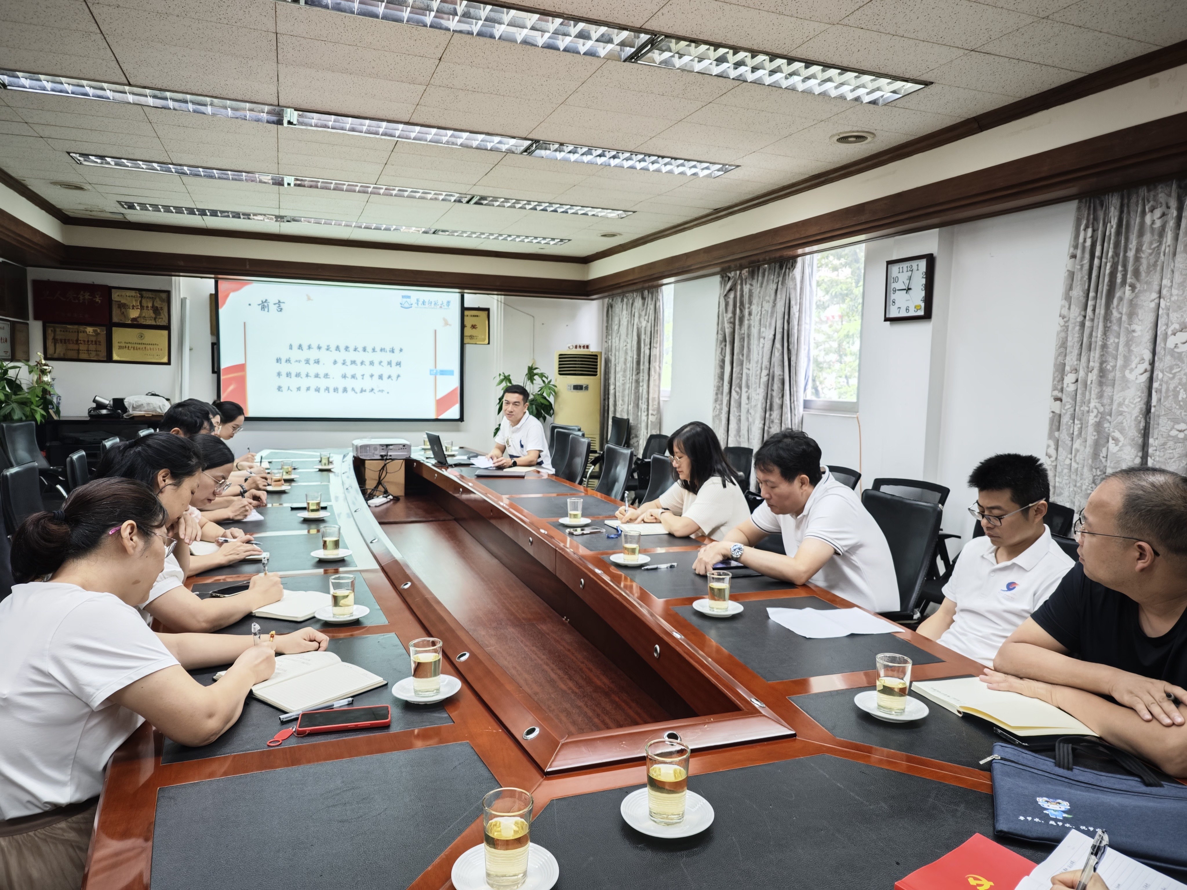 为深入贯彻中央八项规定精神,加强党员党性修养,2025年6月18日上午,后勤管理处副处长王晓荣以《从“八项规定”看党的自我革命》为题作党课报告。后勤石牌小机关党支部全体党员及入党积极分子共15人参加了学习。