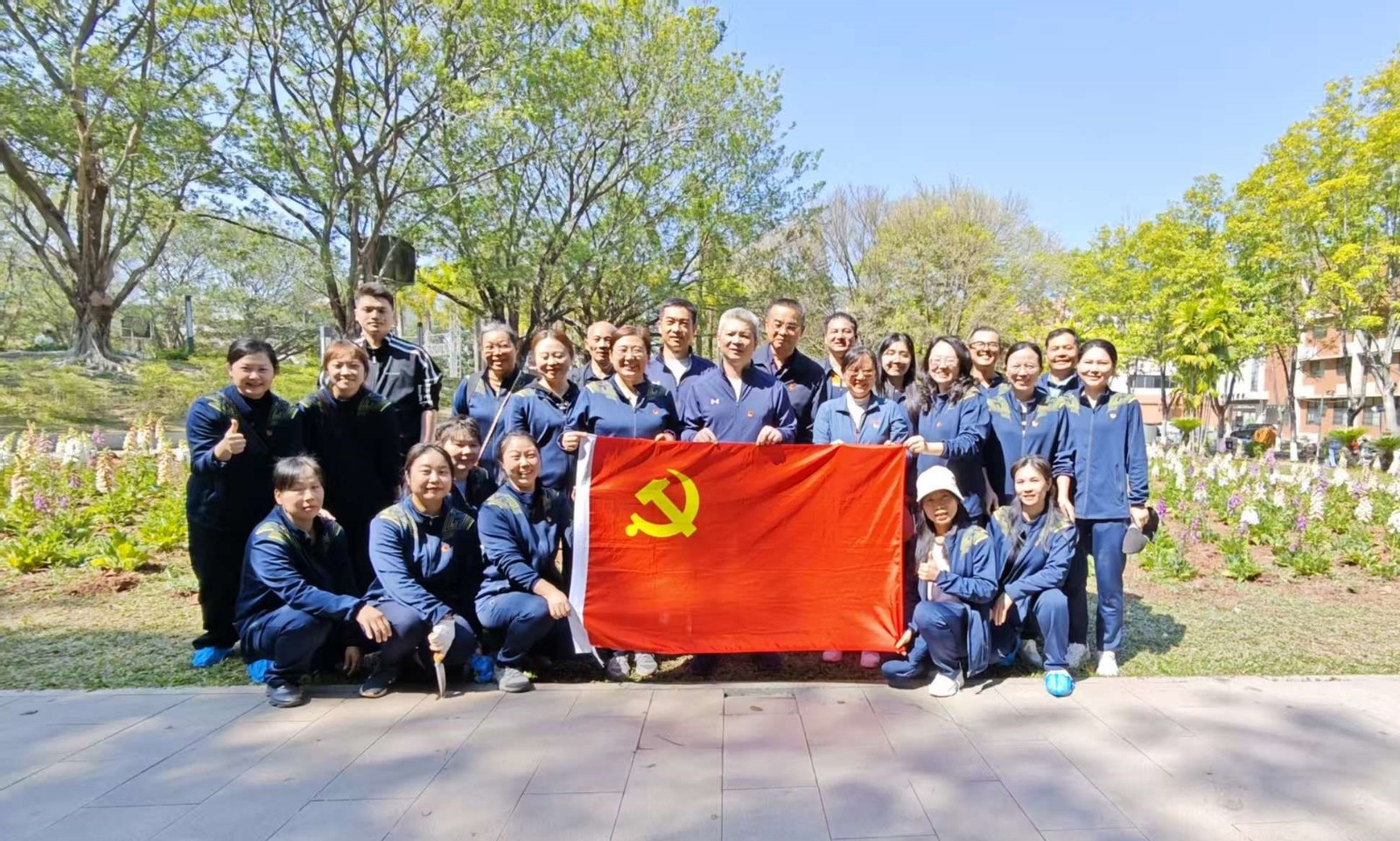 春风拂面,新绿初绽。在第46个植树节到来之际,后勤石牌小机关党支部、物业中心党支部、大学城党支部于3月12日联合组织全体党员、劳动实践课的学生学员等60多人,分别在石牌校园文化广场、大学城校园明德广场开展“绿美校园 党员先行”主题党日活动,共种植1200株鲜花、65棵树木。本次活动将组织生活与劳动实践紧密结合,以实际行动践行绿色发展理念,为美丽校园建设增添新的生机与活力。