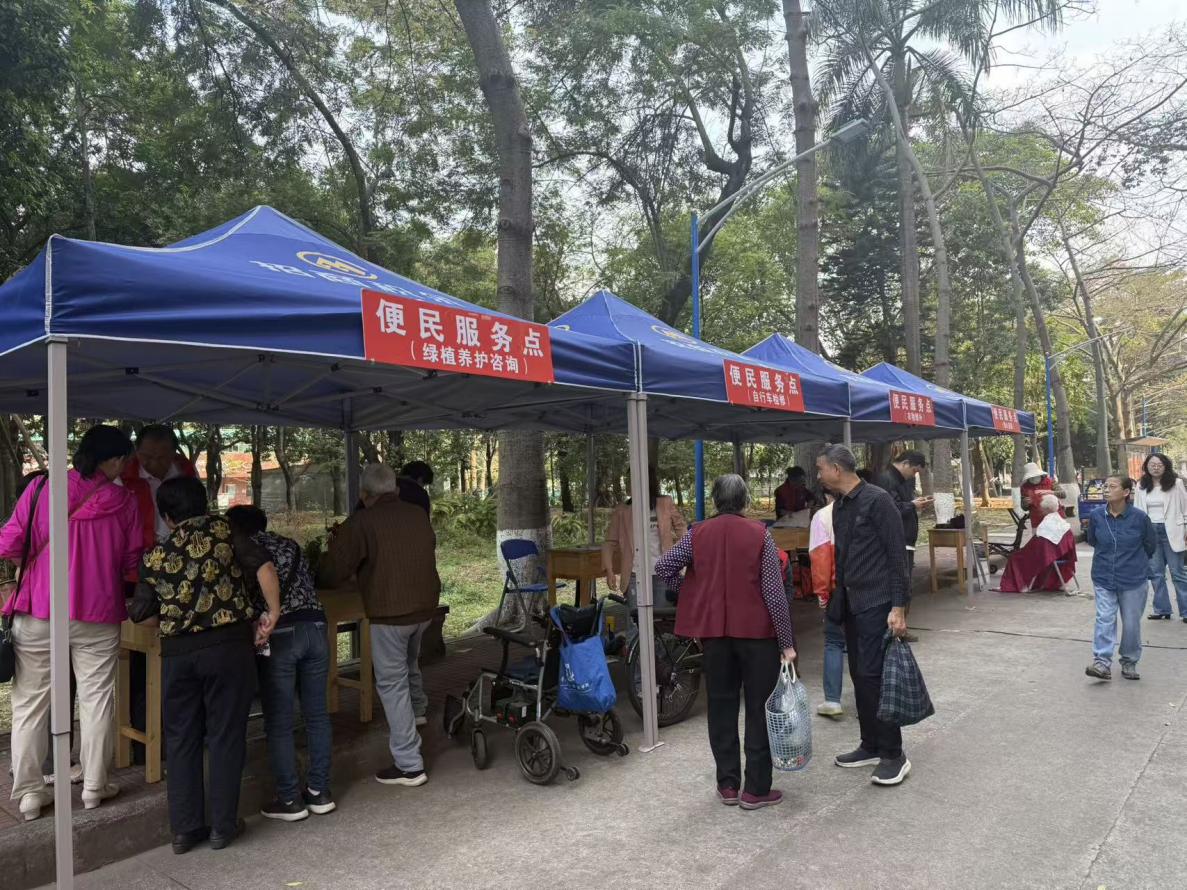 当学雷锋月遇上农历二月二“龙抬头”,便民服务暖心头。3月20日,在石牌校园高教新村全民健身活动广场的便民服务窗口,一位刚完成理发的阿姨说:“今天适逢二月二,刚好在家门口就能免费剪头发,还能顺便测血压和领绿植,真是太方便了!”